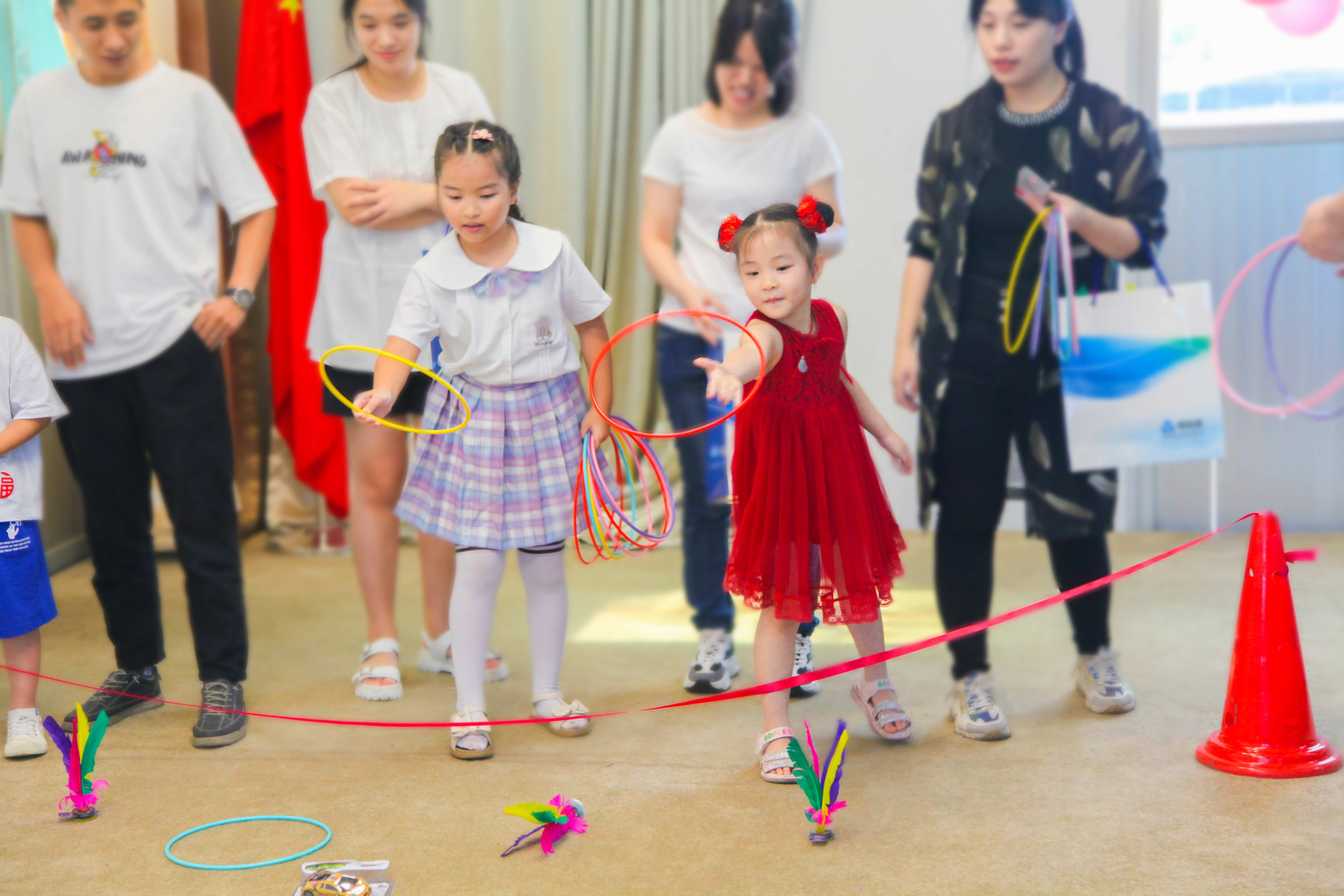 “套圈圈”是本次活動最受歡迎的游戲,獎品甚得孩子們青睞。無論是父母還是孩子,都玩得不亦樂乎。“套圈圈”游戲的獎品也全部被套走,孩子們用熱情和實力清空了場地。